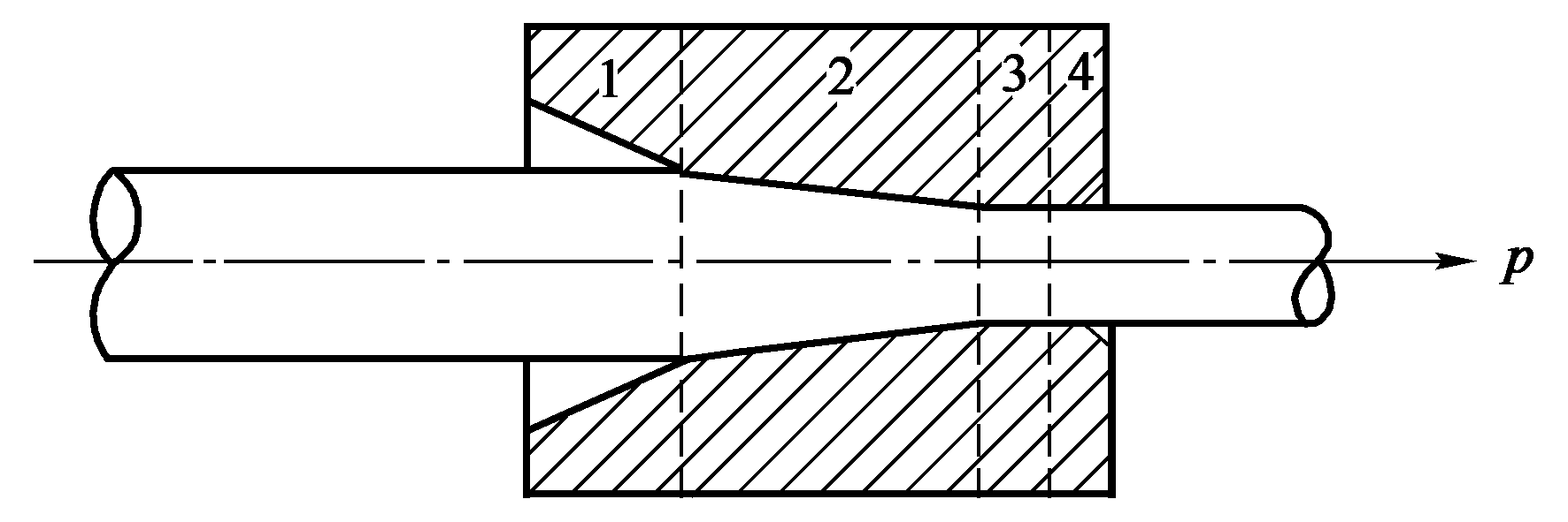 進口區;2 擠壓區;3 定徑區;4 出口區