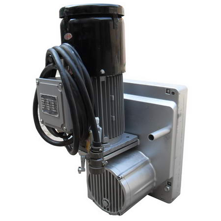 提升機是高空作業吊籃的動力裝置。根據卷揚方式的不同,分為卷揚式和爬升式兩種提升機(圖6-11)。目前吊籃常用爬升式提升機,它是利用繩輪與鋼絲繩之間產生的摩擦力作為吊籃爬升的動力,工作時鋼絲繩靜止不動,提升機的繩輪在鋼絲繩上爬行,從而帶動吊籃整體提升。
